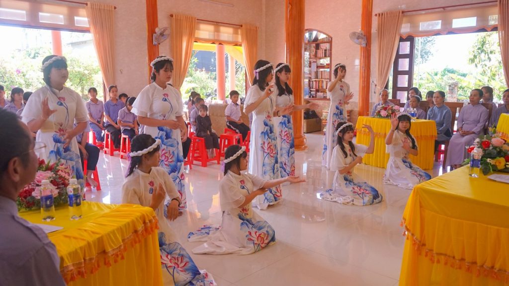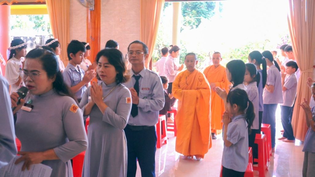 Sau nghi thức cung nghinh chư Tôn đức Ni quang lâm chứng minh, chương trình được mở đầu bằng các tiết mục văn nghệ cúng dường đầy ý nghĩa. Đại chúng trang nghiêm niệm danh hiệu Đức Bổn Sư Thích Ca Mâu Ni Phật, thông qua chương trình buổi lễ, tuyên bố lý do và giới thiệu thành phần tham dự. Nghi thức chào đoàn Gia đình Phật tử, cử bài Sen Trắng và phút tưởng niệm được cử hành trang trọng, thể hiện tinh thần tri ân tiền nhân và tiếp nối truyền thống cao đẹp của tổ chức Gia đình Phật tử Việt Nam.