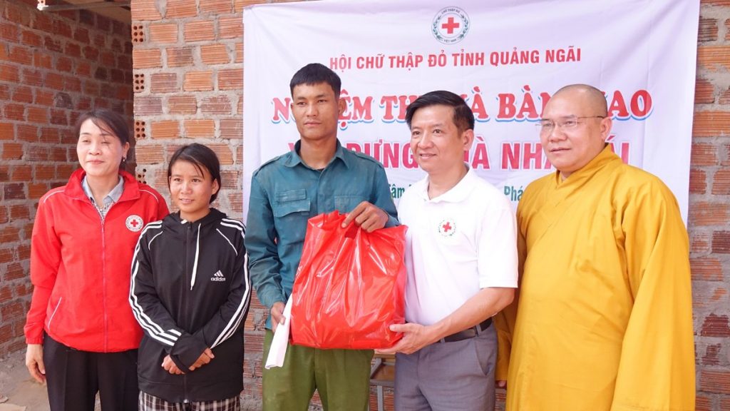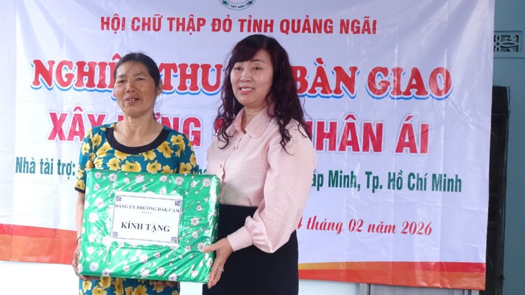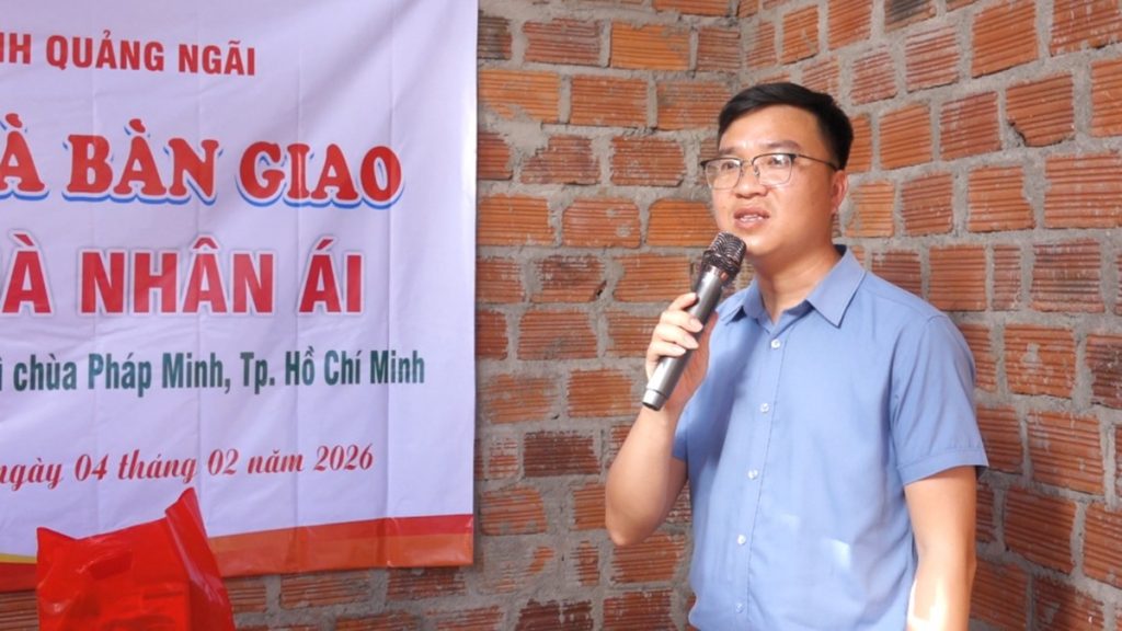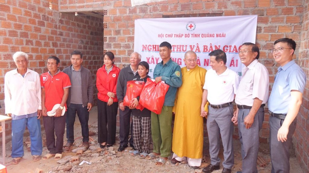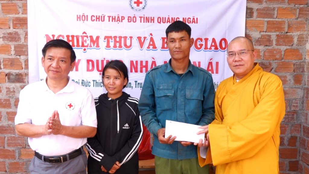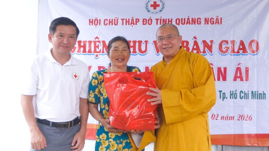 Hưởng ứng Chương trình xóa nhà tạm, nhà dột nát với chủ đề “Mái ấm cho đồng bào tôi”, chiều ngày 04/02/2026 (nhằm ngày 17 tháng Chạp năm Ất Tỵ), Hội Chữ thập đỏ Việt Nam tỉnh Quảng Ngãi đã phối hợp cùng chư Tôn đức Phân ban Phật tử Dân tộc Trung ương tổ chức nghiệm thu và bàn giao 02 căn Nhà Nhân ái cho các hộ gia đình đồng bào dân tộc thiểu số có hoàn cảnh khó khăn trên địa bàn tỉnh, với tổng giá trị 120 triệu đồng.