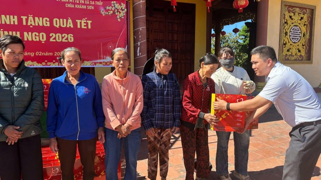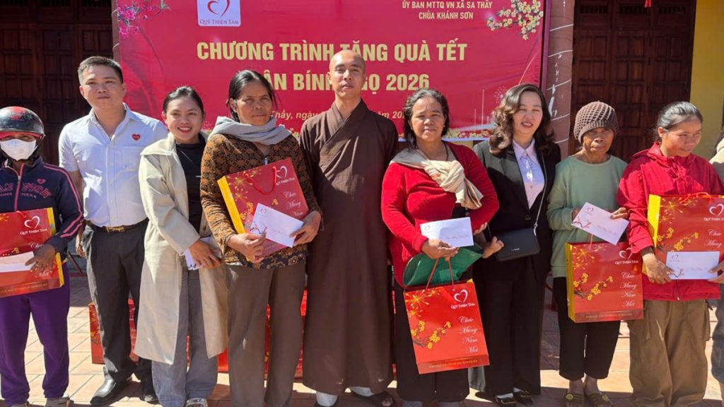 Sáng ngày 03/02/2026, tại chùa Khánh Sơn, xã Sa Thầy, tỉnh Quảng Ngãi, Thượng tọa Thích Nhuận Pháp – Phó Trưởng ban, Chánh Thư ký Ban Trị sự GHPGVN tỉnh Quảng Ngãi, Trụ trì chùa Khánh Sơn – đã phối hợp cùng Quỹ Thiện Tâm tổ chức chương trình trao quà Tết cho bà con đồng bào dân tộc thiểu số có hoàn cảnh khó khăn trên địa bàn.