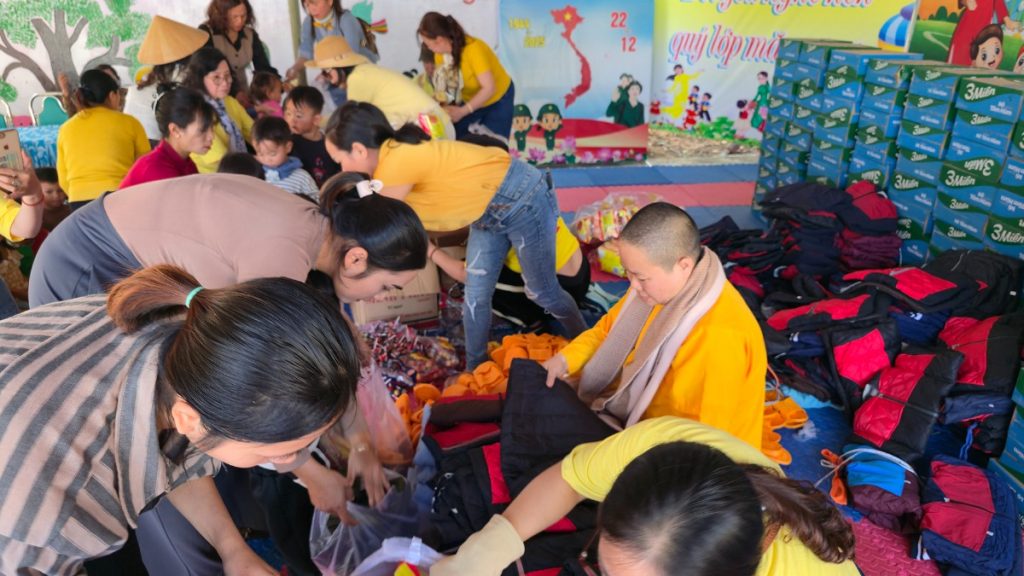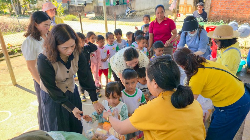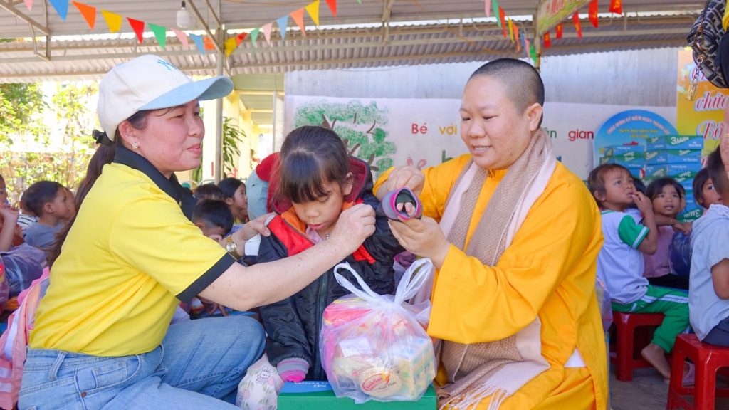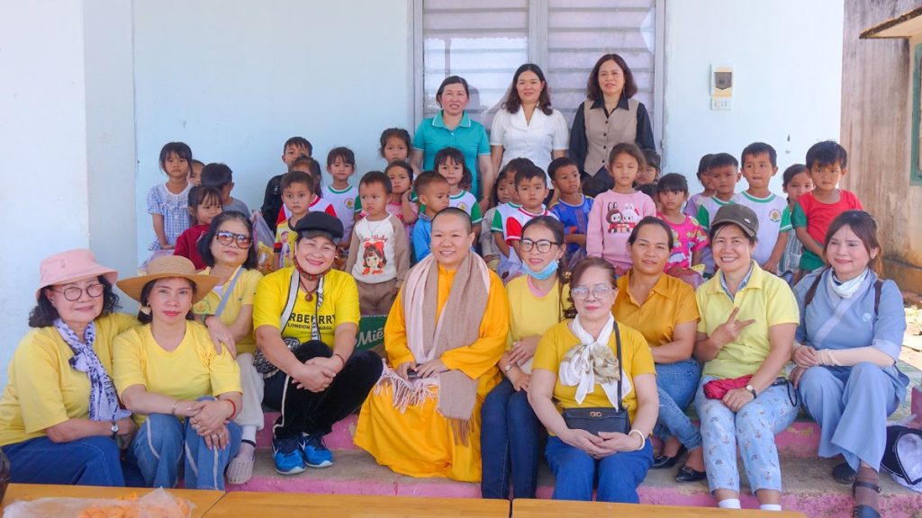 Đoàn do Sư cô Thích Nữ Liên Thuận, chư Ni trú xứ Tịnh xá Ngọc Hòa làm trưởng đoàn, cùng sự tham gia của quý Phật tử và các mạnh thường quân đồng hành. Đón tiếp đoàn có cô Nguyễn Thị Hòa – Hiệu trưởng; cô Đặng Thị Mỹ Liên – Phó Hiệu trưởng cùng tập thể giáo viên Trường Mầm non Đăk Dục.