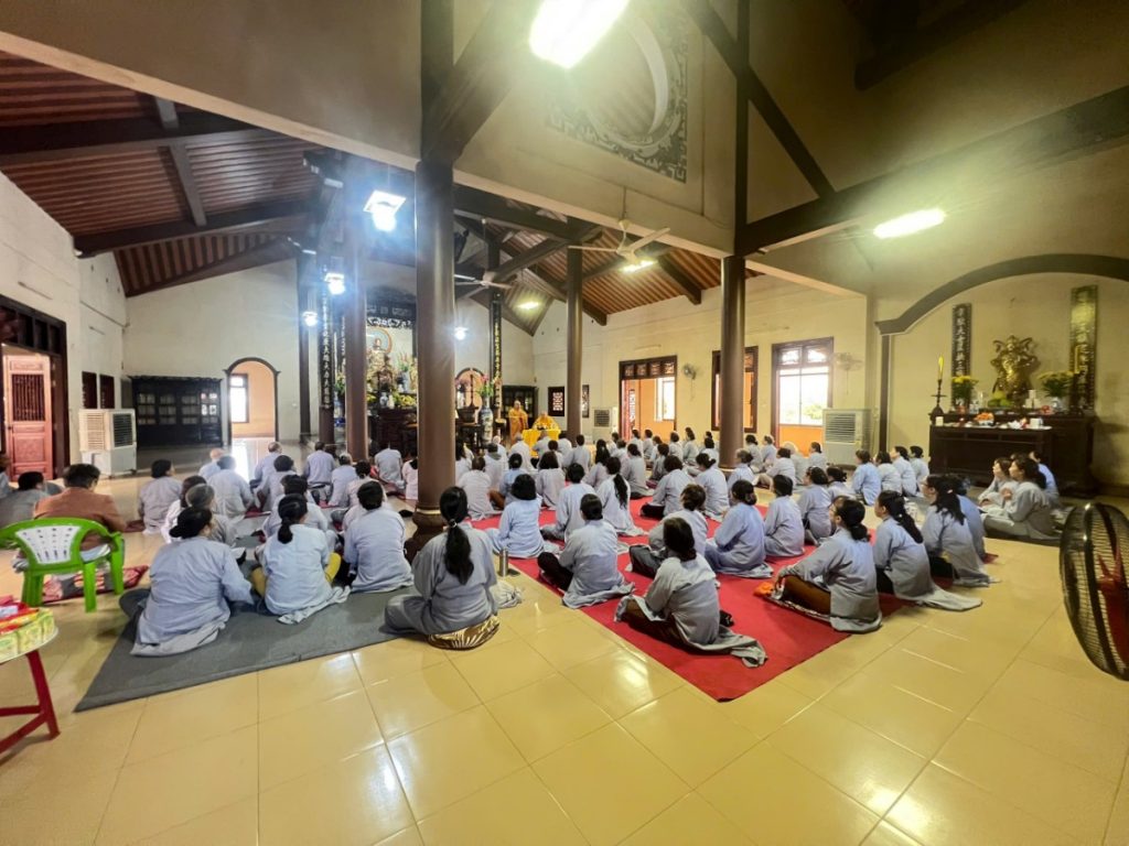Trong không khí trang nghiêm nơi chốn già lam thanh tịnh, hơn 100 Phật tử hành giả đã vân tập về tham dự buổi tổng kết, cùng nhìn lại chặng đường một năm tinh tấn tu học và hành trì Bát Quan Trai giới. Tại đây, Thượng tọa Thích Vạn Nhơn đã ban thời pháp thoại sách tấn đầy ý nghĩa, ôn lại quá trình sinh hoạt, tu tập của đạo tràng, đồng thời nhấn mạnh giá trị thiết thực của pháp tu Bát Quan Trai đối với người Phật tử tại gia.